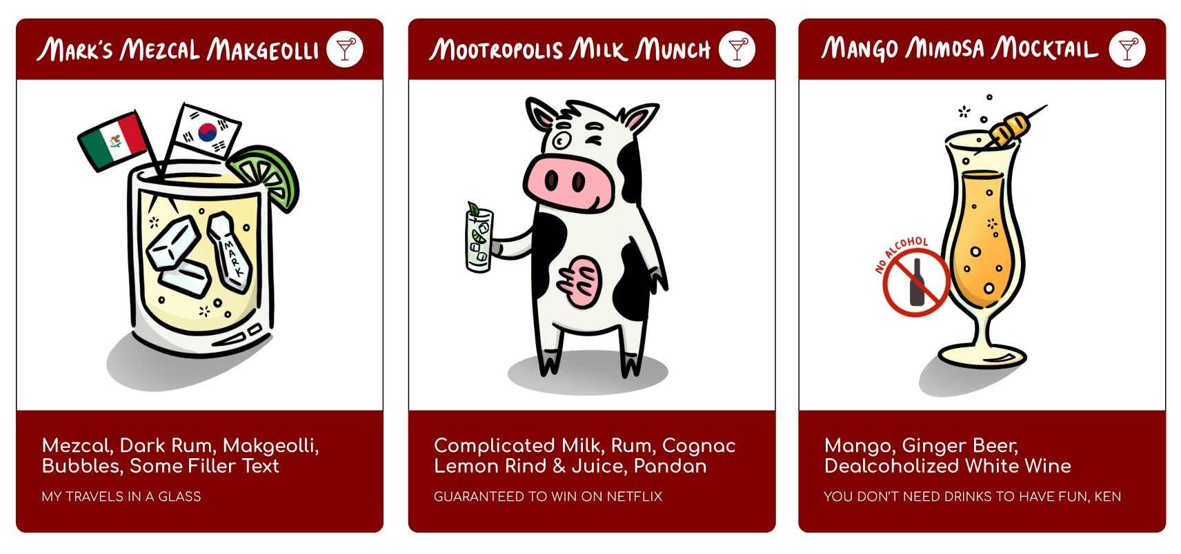This party was the first that I've put dedicated preplanning into both cocktails and mocktails. I've always known mocktails are more difficult in technique than alcoholic cocktails. People have a lower flavor expectation when alcohol is included; to the degree where tasting like nothing is a major complement. However, mocktails are compared to fruit juices while simultaneously expected to be better and different. In my past 10 years of mixing cocktails, I've learned three ways of adding depth to mocktails are fruit infusions, bitter tinctures, and dealcoholized wines which all add unexpected flavor. For this night, I specifically created two pre-made cocktails that were more creative and difficult than anything I had made before, but my mocktail recipe needed to be improvised. I find that people have drastically different flavor rifles for what they want in a mocktail, and the only way to give everyone what they want is to make it up on the spot. I'll share more on my cocktail process in a separate post on 24hlimes.com later, but for now I'll keep focusing on the party.