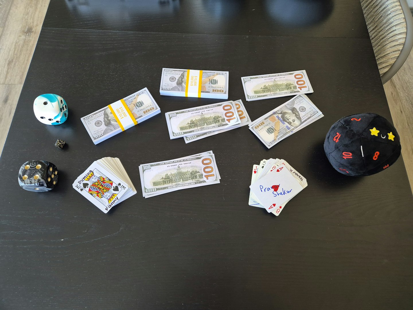 The last major design pillar was to ensure all my friends that had more or less financial freedom felt welcome and equal. The last thing I wanted for this night was someone to see that they had an advantage by donating a significantly larger amount of money than others, and then they were able to flex that the entire night. However, I still wanted to have a minor incentive to donate more for the cause. As a result I decided on everyone receiving an equal amount of play money but with a dual raffle system. Specifically, every $100 donated resulted in one raffle ticket to a dive vacation worth $1000, but everyone also gets a single raffle ticket for a book. The result of these rules was that nobody was able to show off that they had more disposable money, while also mildly privately showing an appreciation to larger donations. I think this combo was very successful where we were able to raise a significant amount of money while also ensuring a fun night for everyone.